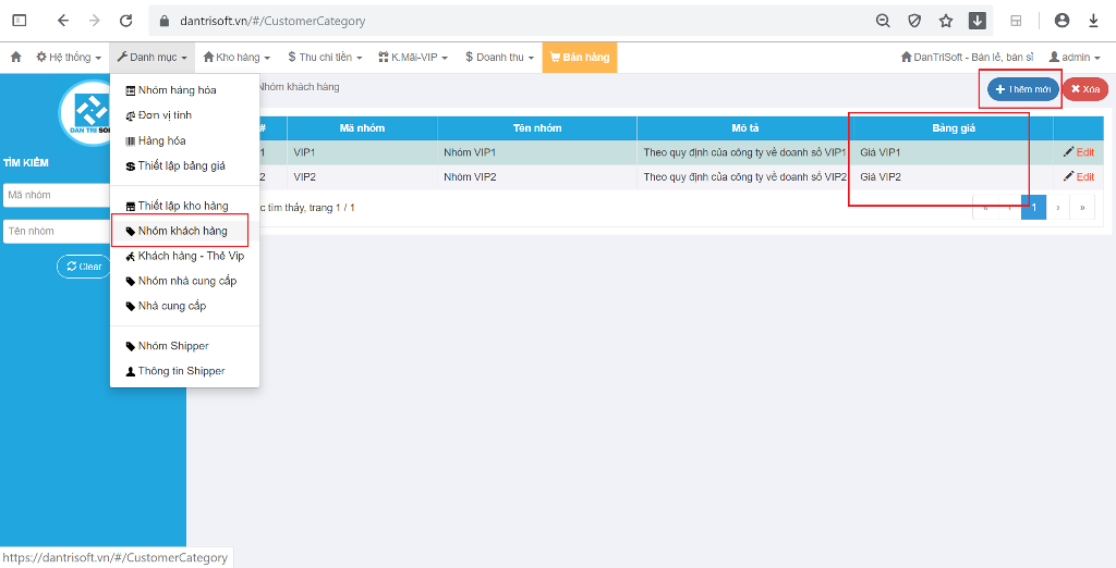 Bước 1: Tạo ra nhiều bảng giá bán khác nhau cho từng nhóm khách hàng/đối tượng khách hàng ngay trên phần mềm & chỉnh sửa nhanh giá bán ngay ở phần mềm DanTriSoft.